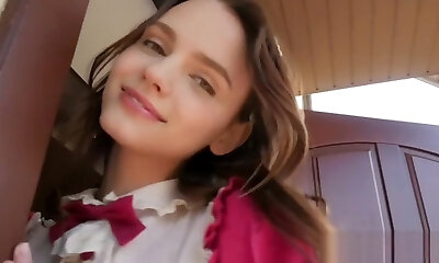 seductora nena anna klavkina abre bien las gams y exhibe el rapidito rosado de cerca
