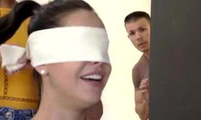 la niñera llega temprano y espía a la esposa que hace gárgaras con el marido