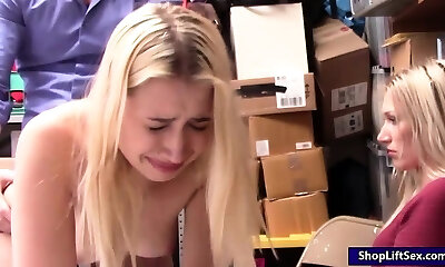 Lovely shoplifting chick Izzy Lush gets her gullet and pussy disciplined