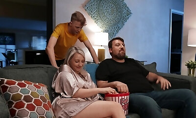 Beautiful fair-haired housewife sucks ball-sac and gets her pussy pounded