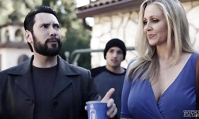 Picking up a Cougar on her way home for an orgy of 3 ways!