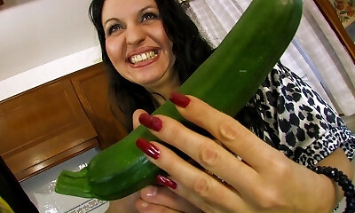 Gorgeous brunette babe fondled and seduced for bang-out in the kitchen