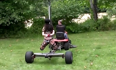 Sassy slave squealing as her pussy is humped using machine in BDSM