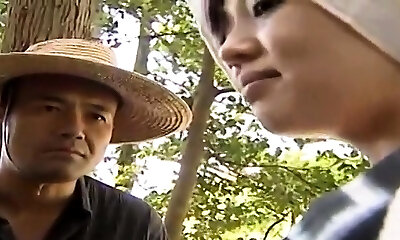 Husband Helps Asian Wife With Grandpa Paramour Outdoors
