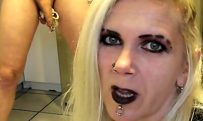 Pierced and tatttooed MILF pumping and sucking pierced hard-on
